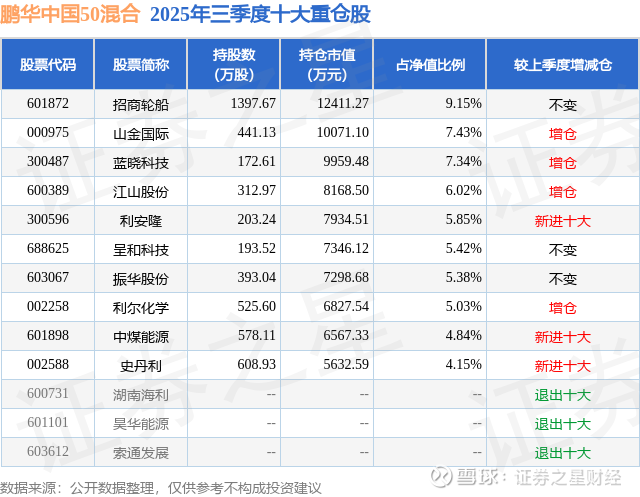 根据2025基金Q3季报公募基金重仓股数据,重仓该股的公募基金共3家,其中持有数量最多的公募基金为鹏华基金的鹏华中国50混合。鹏华中国50混合目前规模为13.56亿元,最新净值2.633(1月12日),较上一交易日上涨1.74%,近一年上涨58.04%。该公募基金现任基金经理为王云鹏。王云鹏在任的基金产品包括:鹏华新材料混合发起式A,管理时间为2023年3月28日至今,期间收益率为26.86%。