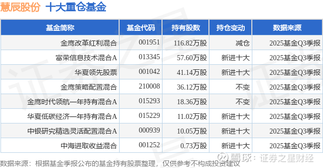 重仓慧辰股份的公募基金请见下表: