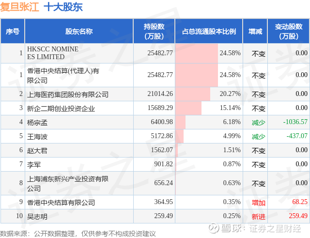 根据复旦张江2025年三季报公布的十大股东详情如下: