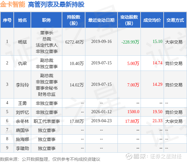 金卡智能近半年内的董监高及核心技术人员增减持详情如下: