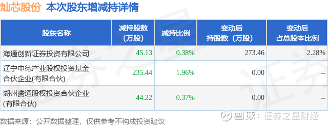 证券之星消息,1月13日灿芯股份发布公告《灿芯股份:股东减持股份结果公告》,其股东辽宁中德产业股权投资基金合伙企业(有限合伙)、湖州赟通股权投资合伙企业(有限合伙)、海通创新证券投资有限公司于2025年11月12日至2026年1月12日间合计减持324.79万股,占公司目前总股本的2.7066%,变动期间该股股价上涨14.89%,截止1月12日收盘报127.82元。