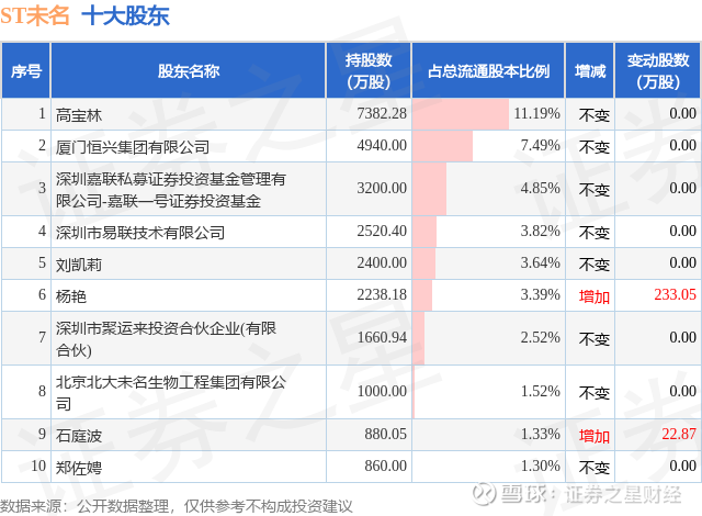 根据ST未名2025年三季报公布的十大股东详情如下: