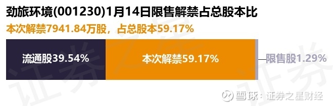 证券之星消息,根据市场公开信息整理,劲旅环境(001230)于1月14日将有7941.84万股限售股份解禁,为公司追加承诺限售股份上市流通,占公司总股本59.17%。(本次数据根据历史公告整理得出,实际情况以上市公司最新公告为准)本次解禁后,公司还有173.0万股限售股份,占总股本1.29%。具体如下图所示: