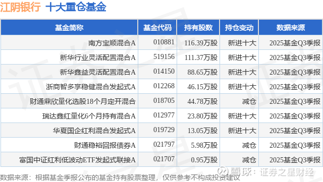重仓江阴银行的公募基金请见下表: