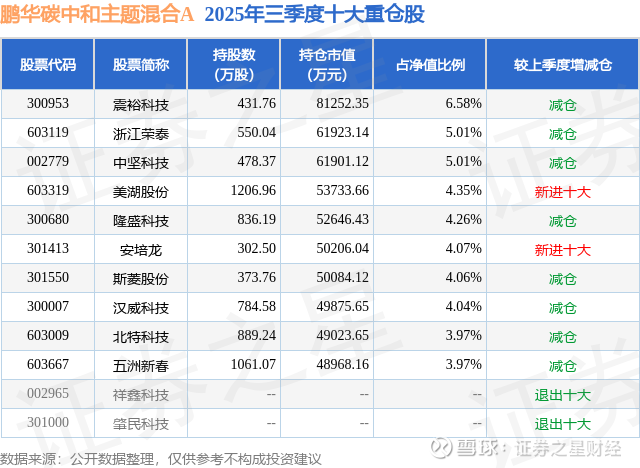 根据2025基金Q3季报公募基金重仓股数据,重仓该股的公募基金共12家,其中持有数量最多的公募基金为鹏华基金的鹏华碳中和主题混合A。鹏华碳中和主题混合A目前规模为28.3亿元,最新净值2.1365(1月13日),较上一交易日下跌0.42%,近一年上涨90.64%。该公募基金现任基金经理为闫思倩。闫思倩在任的基金产品包括:鹏华沪深港新兴成长混合A,管理时间为2022年5月7日至今,期间收益率为64.46%;鹏华新能源汽车混合A,管理时间为2022年7月26日至今,期间收益率为33.03%;鹏华科技驱动混合发起式A,管理时间为2024年8月29日至今,期间收益率为54.91%。