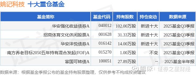 重仓姚记科技的公募基金请见下表: