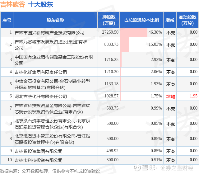 根据吉林碳谷2025年三季报公布的十大股东详情如下: