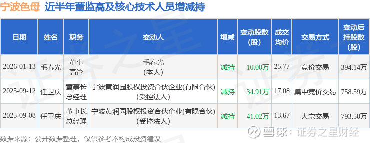 宁波色母近半年内的董监高及核心技术人员增减持详情如下: