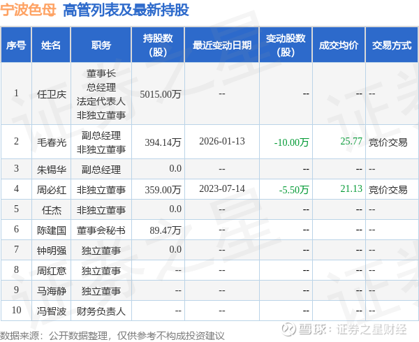 宁波色母的高管列表及最新持股情况如下: