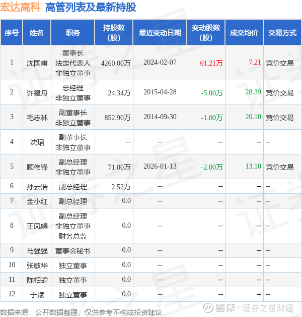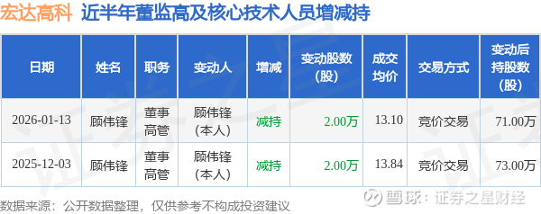 宏达高科近半年内的董监高及核心技术人员增减持详情如下: