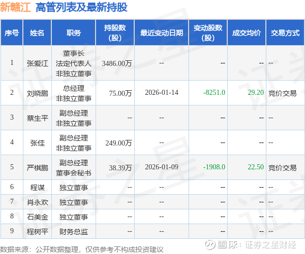 新赣江的高管列表及最新持股情况如下: