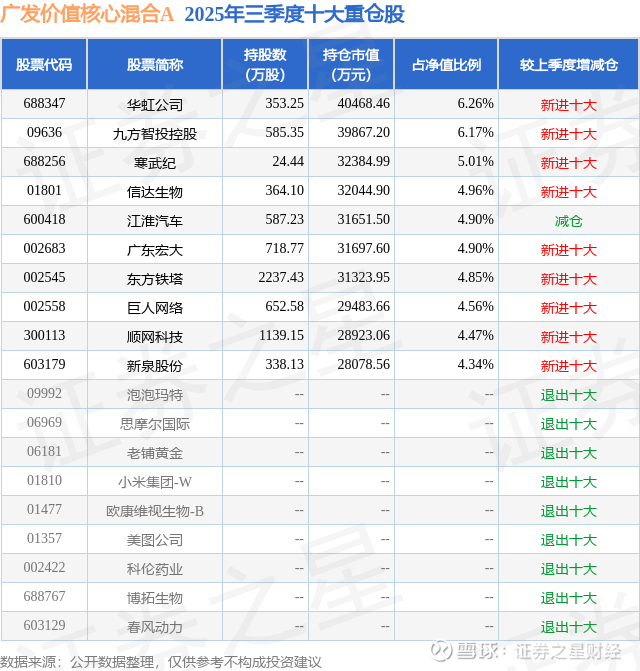 根据2025基金Q3季报公募基金重仓股数据,重仓该股的公募基金共33家,其中持有数量最多的公募基金为广发基金的广发价值核心混合A。广发价值核心混合A目前规模为40.9亿元,最新净值1.0298(1月14日),较上一交易日上涨1.38%,近一年上涨74.69%。该公募基金现任基金经理为吴远怡。吴远怡在任的基金产品包括:广发创新升级混合,管理时间为2020年9月30日至今,期间收益率为-8.87%;广发科技创新混合A,管理时间为2020年11月18日至今,期间收益率为90.01%;广发成长领航一年持有混合A,管理时间为2023年3月10日至今,期间收益率为156.51%。