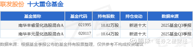 重仓联发股份的公募基金请见下表: