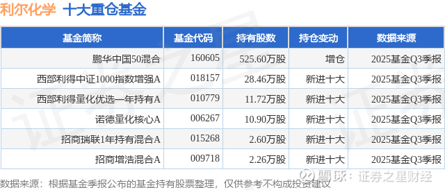 根据2025基金Q3季报公募基金重仓股数据,重仓该股的公募基金共6家,其中持有数量最多的公募基金为鹏华基金的鹏华中国50混合。鹏华中国50混合目前规模为13.56亿元,最新净值2.685(1月14日),较上一交易日上涨0.15%,近一年上涨56.56%。该公募基金现任基金经理为王云鹏。王云鹏在任的基金产品包括:鹏华新材料混合发起式A,管理时间为2023年3月28日至今,期间收益率为31.64%。