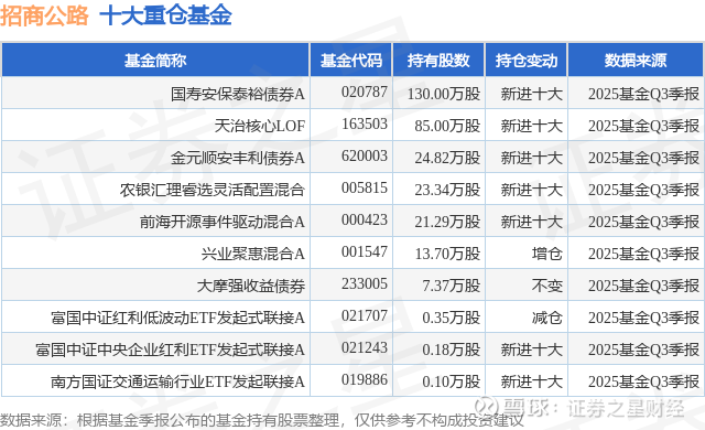 重仓招商公路的前十大公募基金请见下表: