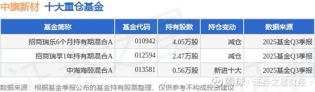 根据2025基金Q3季报公募基金重仓股数据,重仓该股的公募基金共3家,其中持有数量最多的公募基金为招商基金的招商瑞乐6个月持有期混合A。招商瑞乐6个月持有期混合A目前规模为2.95亿元,最新净值1.1457(1月14日),较上一交易日上涨0.13%,近一年上涨5.3%。该公募基金现任基金经理为余芽芳 吴德瑄。余芽芳在任的基金产品包括:招商瑞庆混合A,管理时间为2017年4月13日至今,期间收益率为66.33%;招商瑞文混合A,管理时间为2019年9月11日至今,期间收益率为30.3%;招商瑞恒一年持有期混合A,管理时间为2020年5月22日至今,期间收益率为20.12%;招商瑞信稳健配置混合A,管理时间为2020年6月2日至今,期间收益率为33.59%。吴德瑄在任的基金产品包括:招商瑞享1年持有期混合A,管理时间为2023年4月12日至今,期间收益率为13.3%。