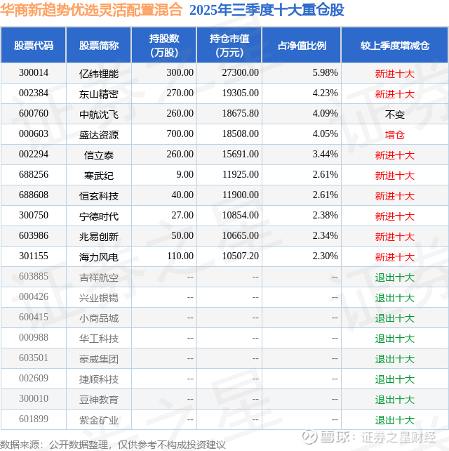 根据2025基金Q3季报公募基金重仓股数据,重仓该股的公募基金共64家,其中持有数量最多的公募基金为华商基金的华商新趋势优选灵活配置混合。华商新趋势优选灵活配置混合目前规模为45.66亿元,最新净值15.458(1月14日),较上一交易日上涨2.07%,近一年上涨61.78%。该公募基金现任基金经理为童立。童立在任的基金产品包括:华商新锐产业混合,管理时间为2016年12月23日至今,期间收益率为73.79%;华商研究精选灵活配置A,管理时间为2017年12月21日至今,期间收益率为276.56%;华商科技创新混合,管理时间为2020年3月6日至今,期间收益率为126.75%;华商研究回报一年持有混合A,管理时间为2023年3月7日至今,期间收益率为33.11%。