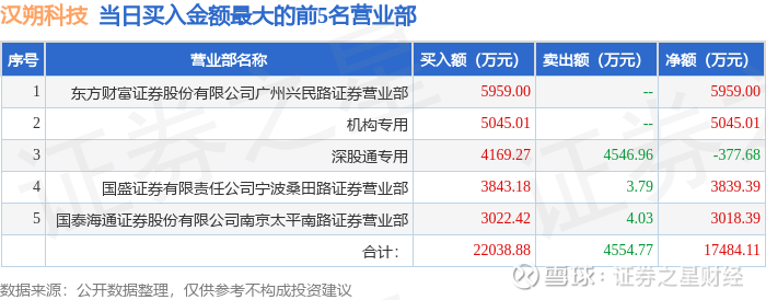 证券小知识:龙虎榜是交易所披露的竞价交易公开信息,现身龙虎榜的个股都是当日最为活跃的个股,是投资者日常重点关注的数据。交易所公布当日买入金额和卖出金额前五名的席位,其中一些席位代表特殊意义,如机构专用席位是指基金专用席位、券商自营专用席位、社保专用席位、券商理财专用席位、保险机构专用席位、保险机构租用席位、QFII专用席位等机构投资者买卖证券的专用通道和席位。深股通专用、沪股通专用为北向资金的交易席位。从龙虎榜数据可以发现和研究机构、游资和散户的资金动向。一些营业部席位经常上榜,市场知名度较高,投资者整理代表散户、游资、量化等不同资金的营业部席位。