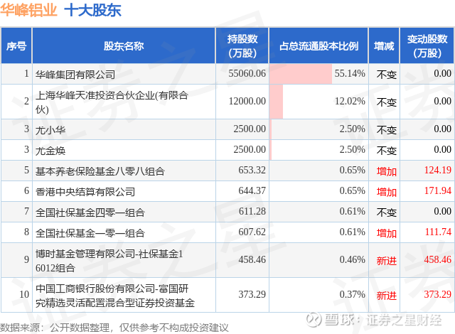 根据华峰铝业2025年三季报公布的十大股东详情如下: