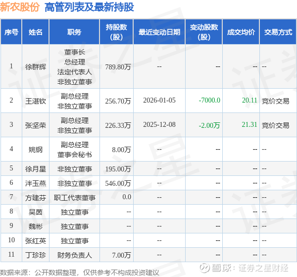 新农股份的高管列表及最新持股情况如下: