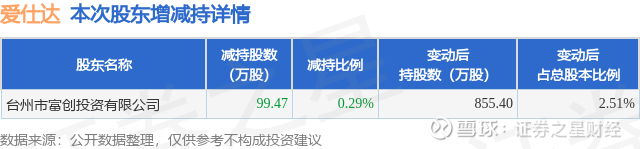 股东增减持详情见下表: