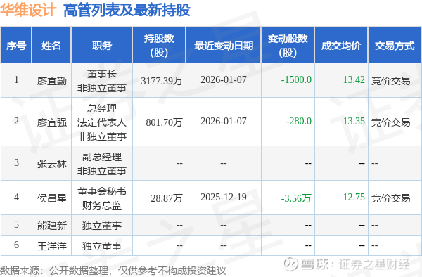 华维设计近半年内的董监高及核心技术人员增减持详情如下: