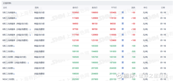 证券之星新能源车行业周报:据上海有色网,本周动力电芯价格继续由成本端推动上行。上游锂盐价格延续强势运行,带动磷酸铁锂正极、电解液等关键材料价格同步上调,电芯端成本压力进一步放大。在此背景下,磷酸铁锂动力电芯报价普遍上调,部分主流规格已完成阶段性调价;三元体系在成本传导与前期价格结构修正的共同作用下亦出现小幅上调。 需求端对本轮涨价形成一定支撑。