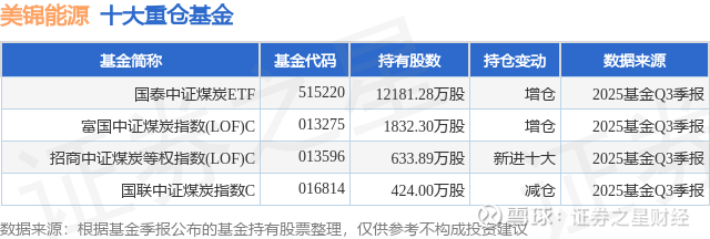 根据2025基金Q3季报公募基金重仓股数据,重仓该股的公募基金共4家,其中持有数量最多的公募基金为国泰基金的国泰中证煤炭ETF。国泰中证煤炭ETF目前规模为114.13亿元,最新净值1.067(1月15日),较上一交易日下跌0.56%,近一年上涨4.78%。该公募基金现任基金经理为吴中昊。吴中昊在任的基金产品包括:国泰中证500指数增强A,管理时间为2022年1月28日至今,期间收益率为40.62%;国泰中证内地运输主题ETF,管理时间为2022年11月30日至今,期间收益率为-2.27%;国泰沪深300指数增强A,管理时间为2022年12月30日至今,期间收益率为23.15%;国泰国证新能源汽车指数C,管理时间为2022年12月30日至今,期间收益率为17.81%。