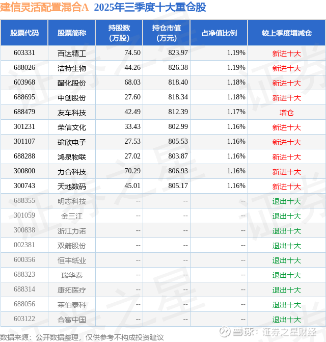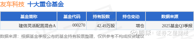根据2025基金Q3季报公募基金重仓股数据,重仓该股的公募基金共1家,其中持有数量最多的公募基金为建信基金的建信灵活配置混合A。建信灵活配置混合A目前规模为2.7亿元,最新净值1.8554(1月15日),较上一交易日上涨0.28%,近一年上涨66.82%。该公募基金现任基金经理为叶乐天 郭志腾。叶乐天在任的基金产品包括:建信央视财经50指数(LOF),管理时间为2013年3月28日至今,期间收益率为252.15%;建信中证500指数增强A,管理时间为2014年1月27日至今,期间收益率为256.29%;建信精工制造指数增强,管理时间为2015年8月26日至今,期间收益率为147.08%;建信中证1000指数增强A,管理时间为2018年11月22日至今,期间收益率为207.86%。郭志腾在任的基金产品包括:建信沪深300红利ETF联接A,管理时间为2023年12月7日至今,期间收益率为33.62%;建信沪深300红利ETF,管理时间为2023年12月7日至今,期间收益率为34.82%;建信中证A500指数增强A,管理时间为2025年6月3日至今,期间收益率为25.66%。