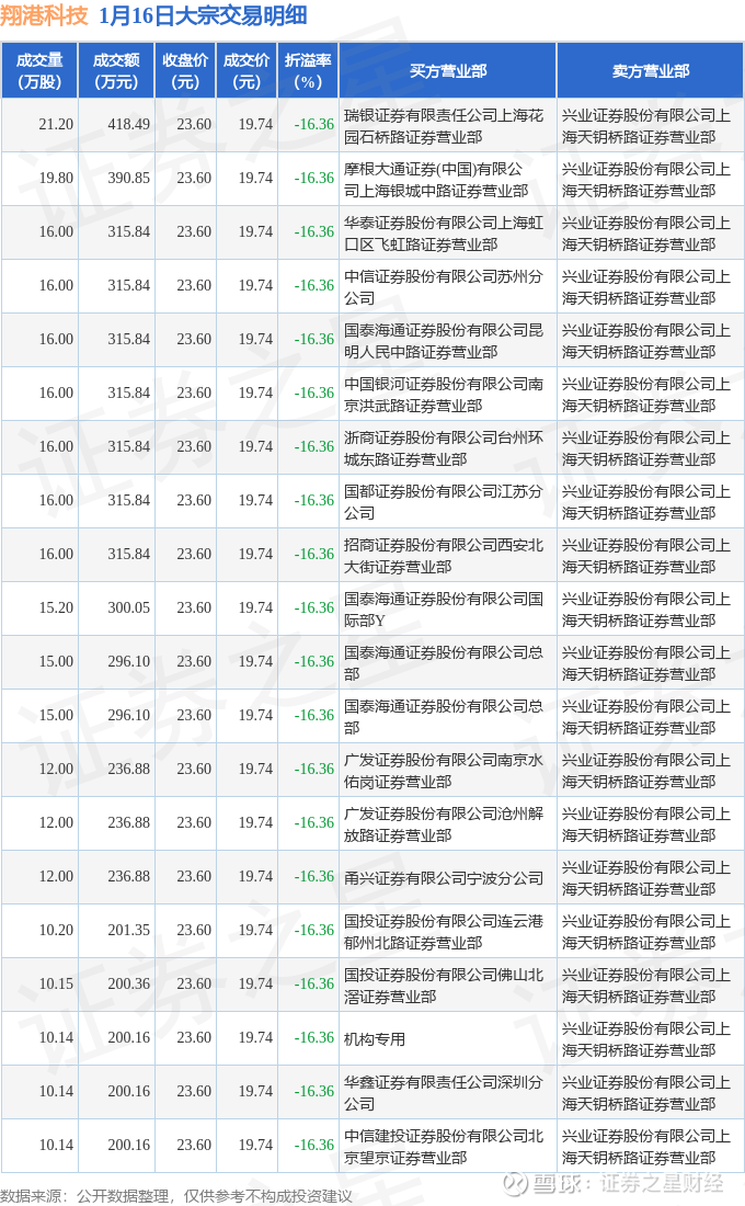 证券之星消息,1月16日翔港科技发生大宗交易,交易数据如下: