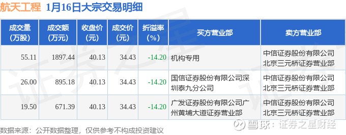 证券之星消息,1月16日航天工程发生大宗交易,交易数据如下: