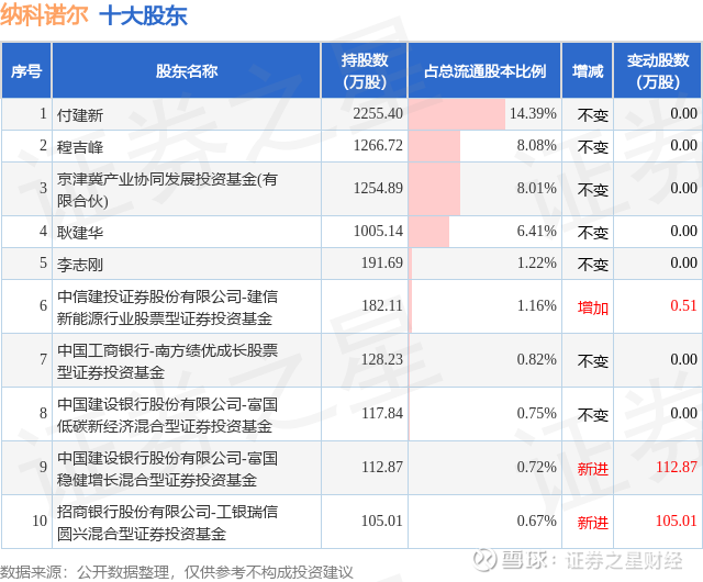 根据纳科诺尔2025年三季报公布的十大股东详情如下: