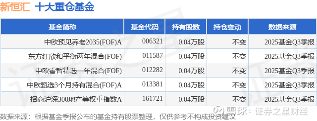 重仓新恒汇的公募基金请见下表: