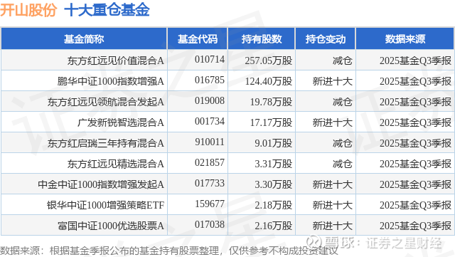 根据2025基金Q3季报公募基金重仓股数据,重仓该股的公募基金共9家,其中持有数量最多的公募基金为东方红资产管理的东方红远见价值混合A。东方红远见价值混合A目前规模为10.3亿元,最新净值1.2792(1月16日),较上一交易日上涨0.76%,近一年上涨38.7%。该公募基金现任基金经理为周杨。周杨在任的基金产品包括:东方红启瑞三年持有混合A,管理时间为2023年10月28日至今,期间收益率为29.48%;东方红远见领航混合发起A,管理时间为2023年11月16日至今,期间收益率为32.12%;东方红远见精选混合A,管理时间为2025年3月5日至今,期间收益率为42.73%。