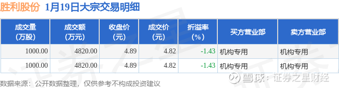 证券之星消息,1月19日胜利股份发生大宗交易,交易数据如下: