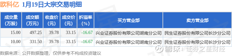 证券之星消息,1月19日欧科亿发生大宗交易,交易数据如下: