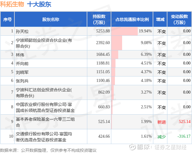 根据科拓生物2025年三季报公布的十大股东详情如下:
