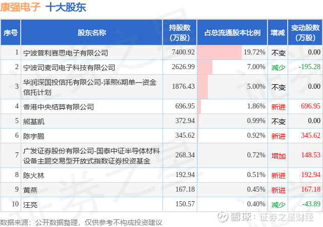 根据康强电子2025年三季报公布的十大股东详情如下:
