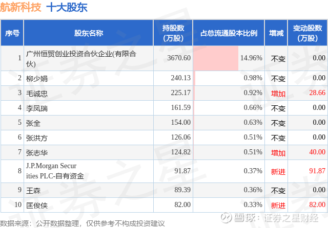 根据航新科技2025年三季报公布的十大股东详情如下: