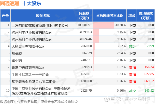 根据圆通速递2025年三季报公布的十大股东详情如下: