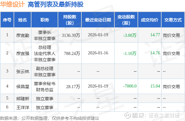 华维设计的高管列表及最新持股情况如下: