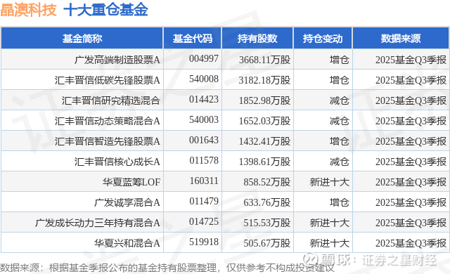 重仓晶澳科技的前十大公募基金请见下表:
