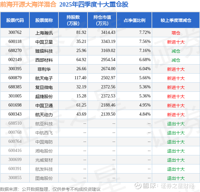 根据2025基金年报公募基金重仓股数据,重仓该股的公募基金共4家,其中持有数量最多的公募基金为前海开源基金的前海开源大海洋混合。前海开源大海洋混合目前规模为4.42亿元,最新净值2.468(1月19日),较上一交易日上涨1.9%,近一年上涨66.2%。该公募基金现任基金经理为刘宏。刘宏在任的基金产品包括:前海开源周期优选混合A,管理时间为2021年3月12日至今,期间收益率为79.45%;前海开源沪港深农业混合A,管理时间为2021年3月12日至今,期间收益率为-29.13%;前海开源股息率100强股票A,管理时间为2021年4月22日至今,期间收益率为34.58%;