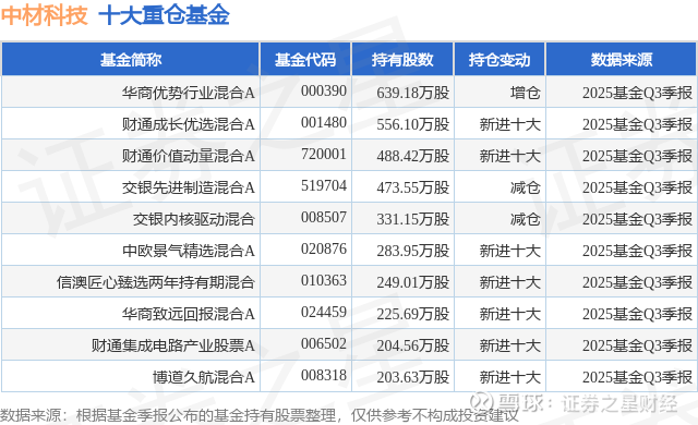 重仓中材科技的前十大公募基金请见下表: