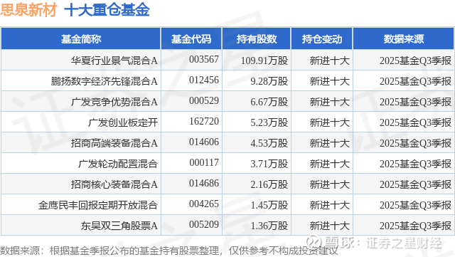 重仓思泉新材的公募基金请见下表: