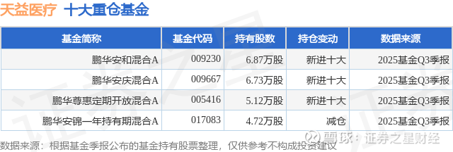 重仓天益医疗的公募基金请见下表: