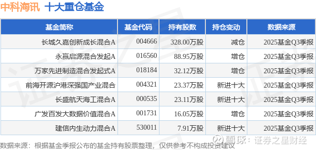 重仓中科海讯的公募基金请见下表: