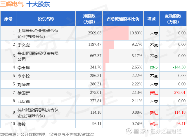 根据三晖电气2025年三季报公布的十大股东详情如下: