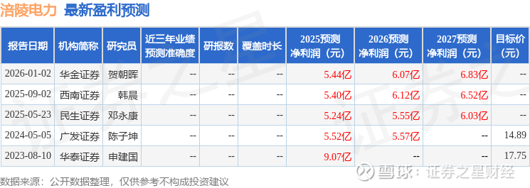最新盈利预测明细如下: