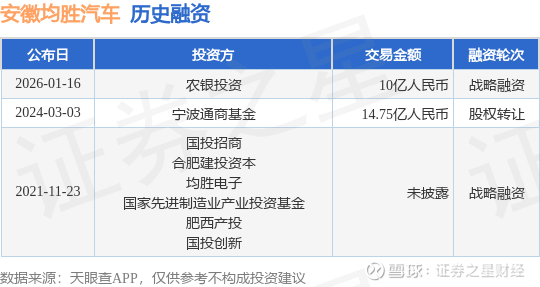 证券之星消息,根据天眼查APP于1月16日公布的信息整理,安徽均胜汽车安全系统控股有限公司战略融资,融资额10亿人民币,参与投资的机构包括农银投资。